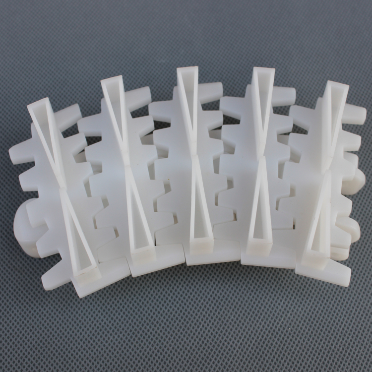 2.材質(zhì):鏈板材質(zhì):聚甲醛(POM),銷軸材質(zhì):冷軋奧氏體不銹鋼。