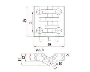 產(chǎn)品描述:尺寸參數(shù) 型號(hào) 名稱 材質(zhì) 顏色 824-C 鉸鏈C 加強(qiáng)尼龍+不銹鋼 黑色